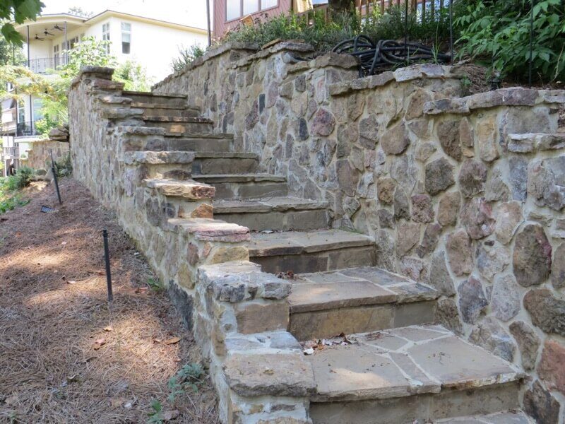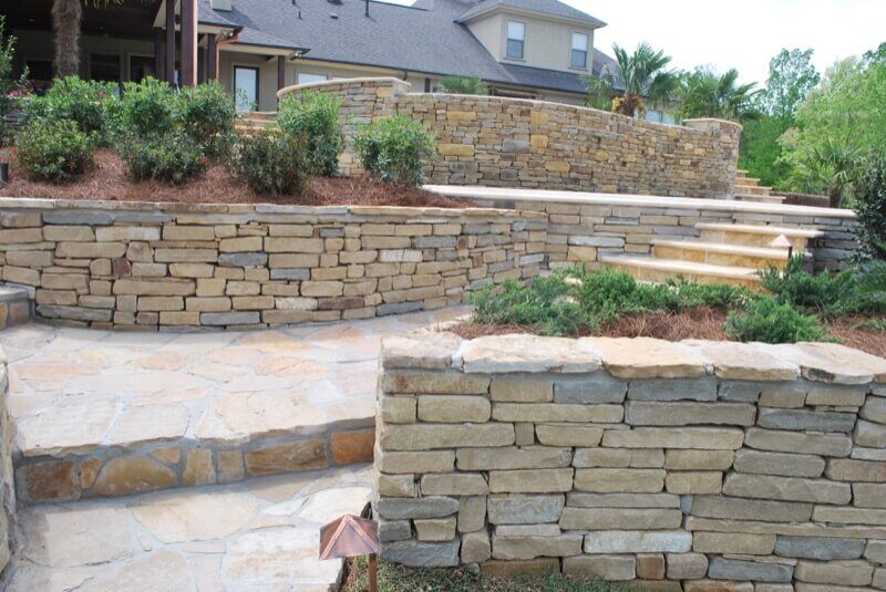 Construction begins with excavating areas to create level foundations, followed by laying compacted gravel bases that provide solid footing and proper drainage. We build walls layer by layer, ensuring each component is level before proceeding. Proper drainage techniques behind walls prevent water buildup that could lead to structural failure, using perforated pipes and gravel backfill that allows moisture to escape effectively.